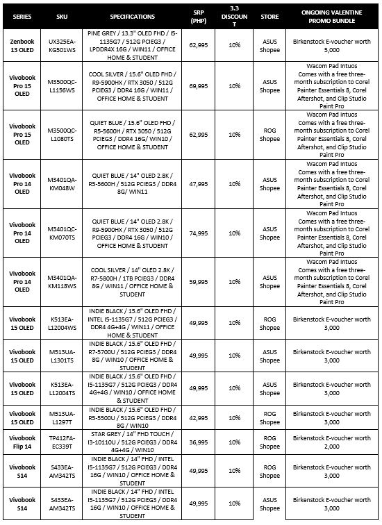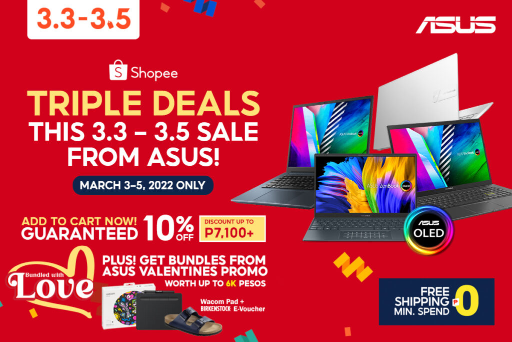 In addition to the 3.3 Sale, the ASUS and ROG Bundled with Love Valentines Promotion is still ongoing until March 15, 2022 so you can enjoy exclusive bundled items such as Birkenstock Vouchers, Wacom Pads, Nanoleaf Starter Kits and more in addition to the special 3.3 discount! Find out more about that here https://ph.asus.click/ValentinesPromo2022