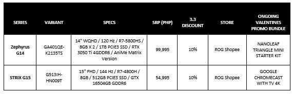 Of course, don’t forget the additional Valentines promotion Bundles still going on. Get a Nanoleaf Triangle Mini Starter Kit or a Google Chromecast with Google TV with your purchase of a Zephyrus G14 or Strix G15!