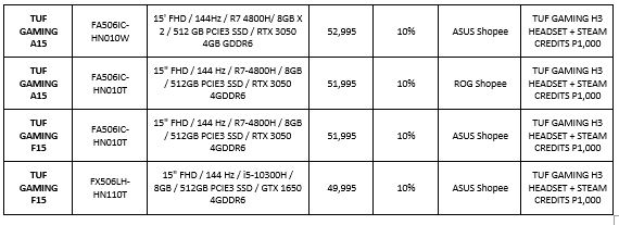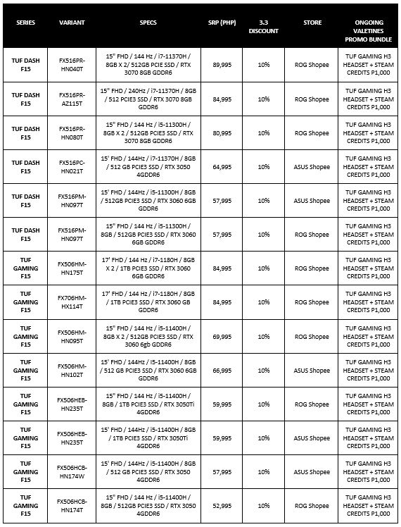 All participating ROG and TUF Gaming laptops will have 10% discount and free shipping during Shopee’s promo duration – March 3 – March 15, 2022. Be sure to visit ROG Shopee and ASUS Shopee to avail of these special deals.