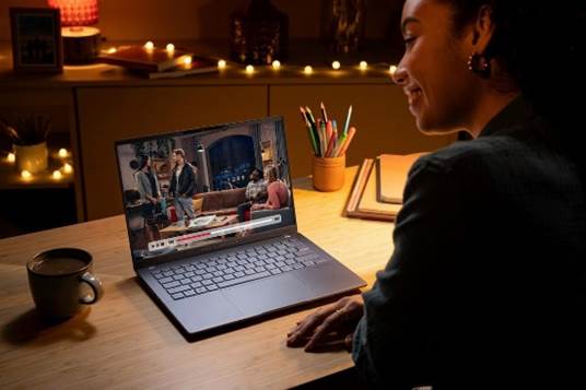 The Vivobook S 14 integrates cutting-edge ASUS AI applications that offer personalized user experiences, enhance security, and improve system efficiency. The innovative ASUS AiSense IR camera ensures users always look their best during video calls, and AI noise-cancellation technology reduces background noise for clearer microphone and audio output.