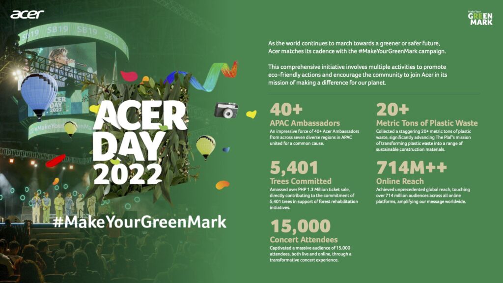 The Acer Day #MakeYourGreenMark campaign was a groundbreaking effort that helped to change the direction of global sustainability efforts. The campaign’s success is a testament to Acer’s commitment to a more sustainable future.