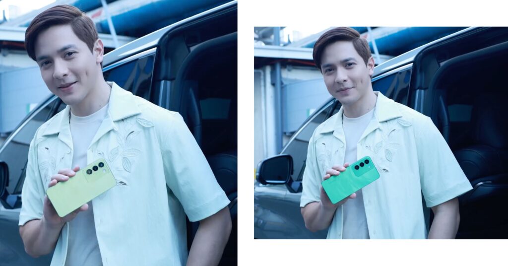 Alden showcased the vivo Y100’s sleek design, particularly the captivating Breeze Green color variant. This phone boasts a revolutionary photochromic effect. As Alden stepped into sunlight, the phone’s back panel seamlessly transitioned from a light green shade to a deeper hue in mere seconds, effortlessly complementing his outfit. This unique feature adds a touch of personalization and flair to the phone’s aesthetics.