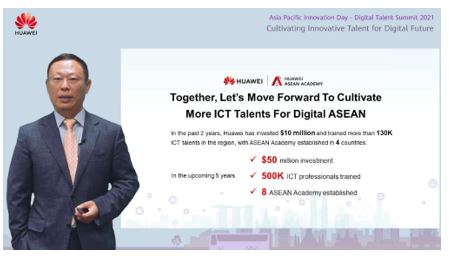 3 November 2021 – The ASEAN Foundation and Huawei signed MoU on joint efforts to bridge the digital talent gap at the Asia Pacific Innovation Day – Digital Talent Summit 2021 on Wednesday. The online summit brought together policy makers, researchers and industry experts to share solutions and best practices in building a sustainable ecosystem that will help foster digital talents in the Asia Pacific.