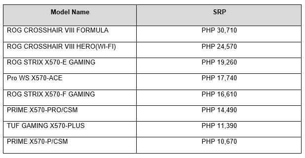Manila, Philippines, July 23, 2019 — ASUS announces prices for select X570 motherboards that will be sold during the month of July. Other models that were released during Computex 2019 will be available in the market by August 2019.