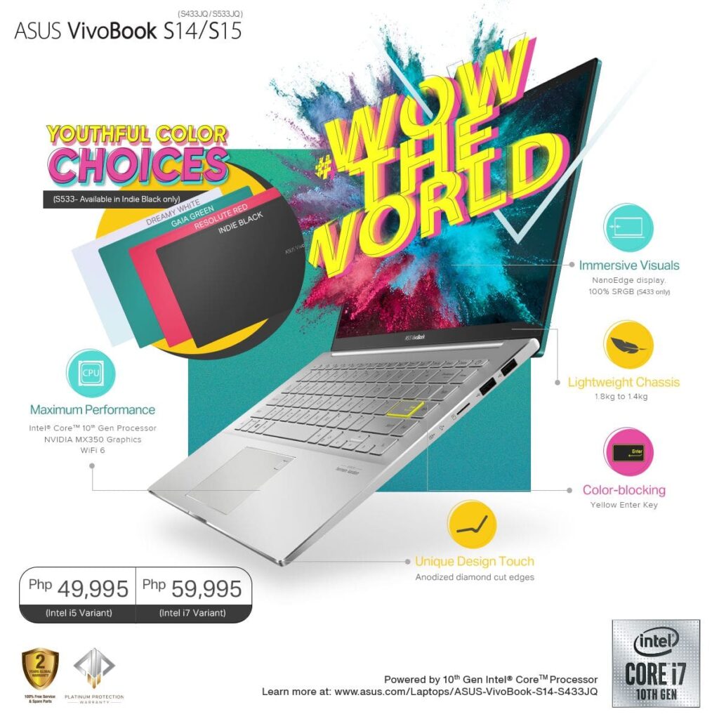 MANILA, Philippines, July 31, 2020— ASUS Philippines pulled out all the stops to #WowTheWorld, introducing the brand’s latest showstopping devices, the ASUS VivoBook S14 (S433) and S15 (S533). Drawing inspiration from themes that reflect the ideas and attitudes of today’s youth, a.k.a. the Gen Z, the all-new ASUS VivoBook S14 and S15 are a pair of powerful and premium devices that come in 4 distinctive, youthful colors. The features of both laptops enable its users to experience maximum performance and immersive visuals, all in an amazingly lightweight chassis, allowing you to work, create play and learn anytime, anywhere! And with the growing popularity on the mainstream VivoBook S laptops, ASUS Philippines also partnered with some of the country’s most inspirational content creators, who likewise showcase and embody the traits and ideals of the Gen Z.