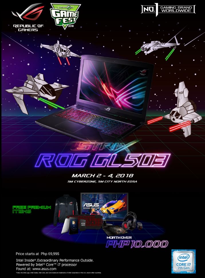 Get a chance to take home a limited edition ROG Join The Republic jacket when you buy any ROG or FX laptops from March 2-31, 2018 in all ROG Concept stores and authorized ASUS and ROG resellers nationwide. PLUS! Get an exclusive CGF Bonus of ROG items worth Php10,000.00 when you buy ROG Strix GL503VD-FY093T from March 2-4, 2018 in ROG Concept Store SM North EDSA, in partnership with Complink, PC Express, Silicon Valley, and Villman.