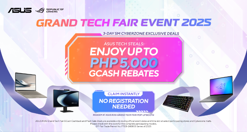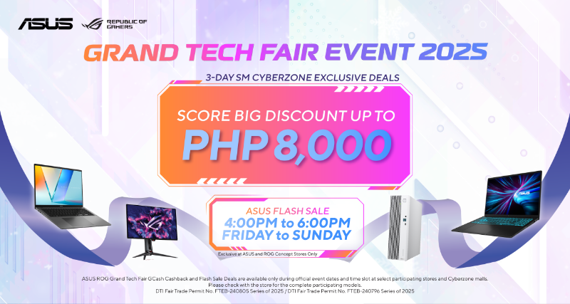 Get ready to upgrade and gear up for the new year starting November 14! For the complete list of qualified products, promo mechanics, participating stores, and event schedules, follow the official ASUS Philippines and ROG Philippines Facebook pages, or check out the ASUS ROG Grand Tech Fair 2025 microsite: https://ph.asus.click/grandtechfair2025.