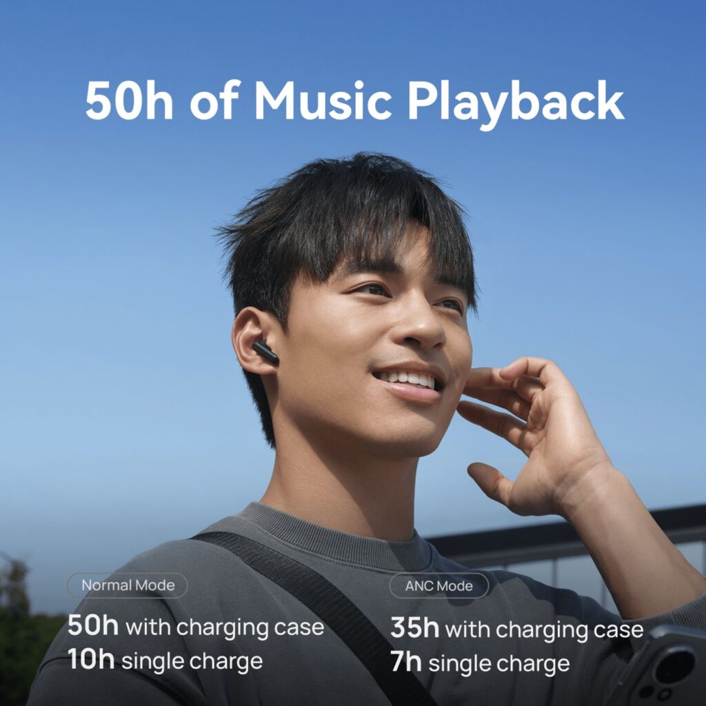 Dead earbuds are the modern tragedy. But the FreeBuds SE 4 ANC is built to last. You get up to 10 hours of playback on a single charge, and 50 hours total with the charging case. That’s a full week of listening—even if you’re clocking in 7 hours a day.