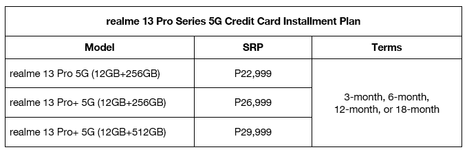 Additionally, realme has partnered with Home Credit to provide interest-free payment options for the realme 13 Pro 5G and realme 13 Pro+ 5G. Customers can choose from installment plans of 6, 9, 12, 15, or 18 months, all at 0% interest, making it easier than ever to own a top-of-the-line device. A standard down payment is required, and the promotion is also valid until December 8, 2024.