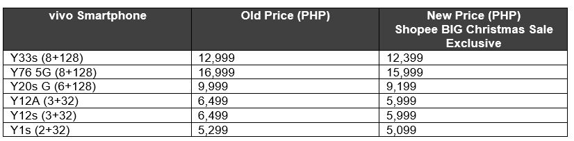 Get more vivo smartphones on sale this Big Christmas Sale on Shopee on Dec. 12-14 and the payday sale on Dec. 15: