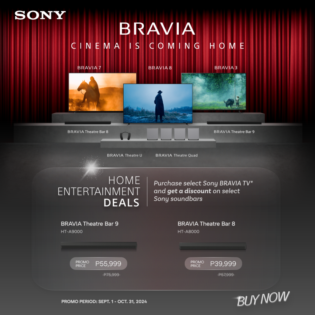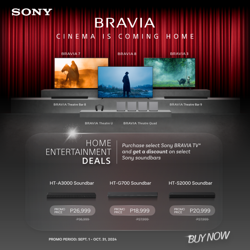 Manila, Philippines – September 13, 2024 – Immerse yourself in the world of cinema with Sony’s BRAVIA TVs and premium soundbars. Enjoy exceptional picture quality and immersive audio as you transform your living room into a personal theater.