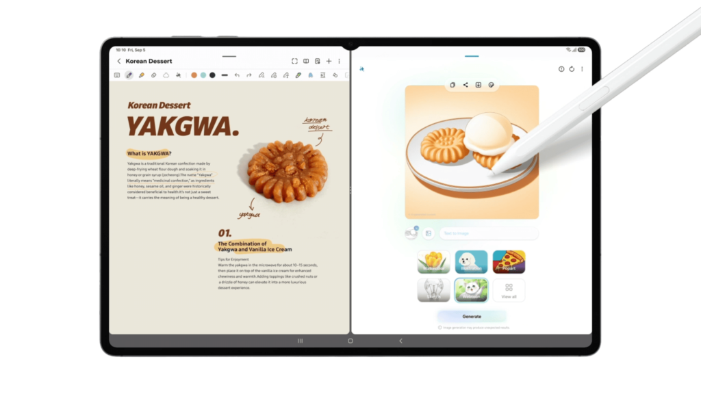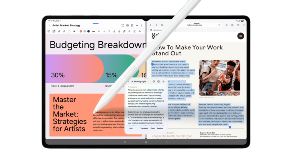 Then there’s Drawing Assist. Rough sketches transform into polished illustrations with a tap. For students, designers, or anyone who’s ever doodled an idea on the fly, this is a productivity boost disguised as magic. Writing Assist does the same for text, refining your words in seconds and letting you drop polished content into any app.