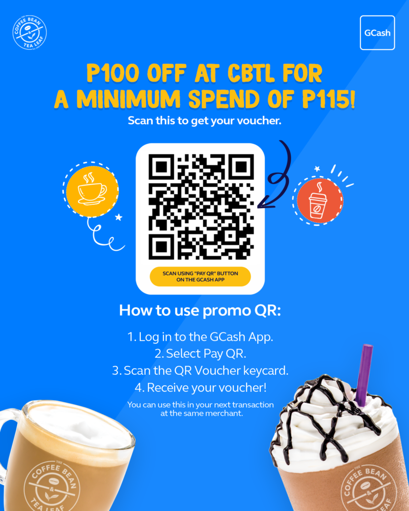Get P100 Off at CBTL with GCash QR Scan to Pay