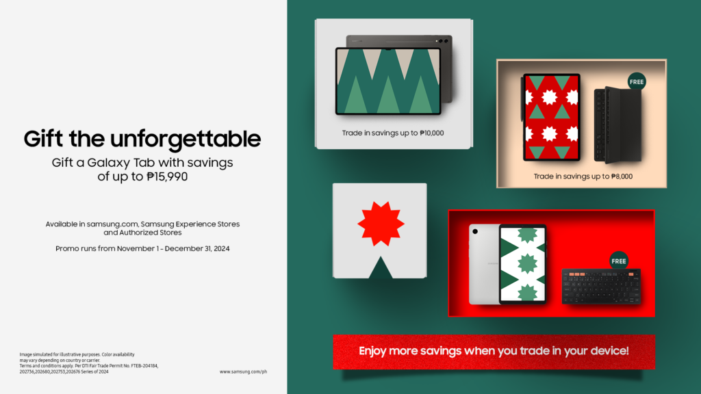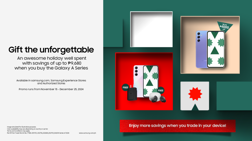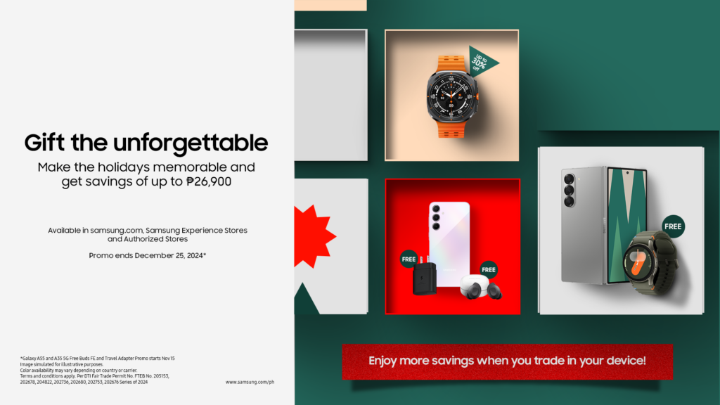 The holiday season is just around the corner, and Samsung is making it unforgettable with its Galaxy Grand Holiday Sale and 11.11 offers. From now until December 31, 2024, Samsung fans can enjoy epic deals on the latest Galaxy AI-powered devices, with stackable discounts of up to Php 26,990. This limited-time sale is available at Samsung.com, Samsung Experience Stores, Samsung’s Flagship Stores on Lazada and Shopee, and Authorized Stores nationwide.