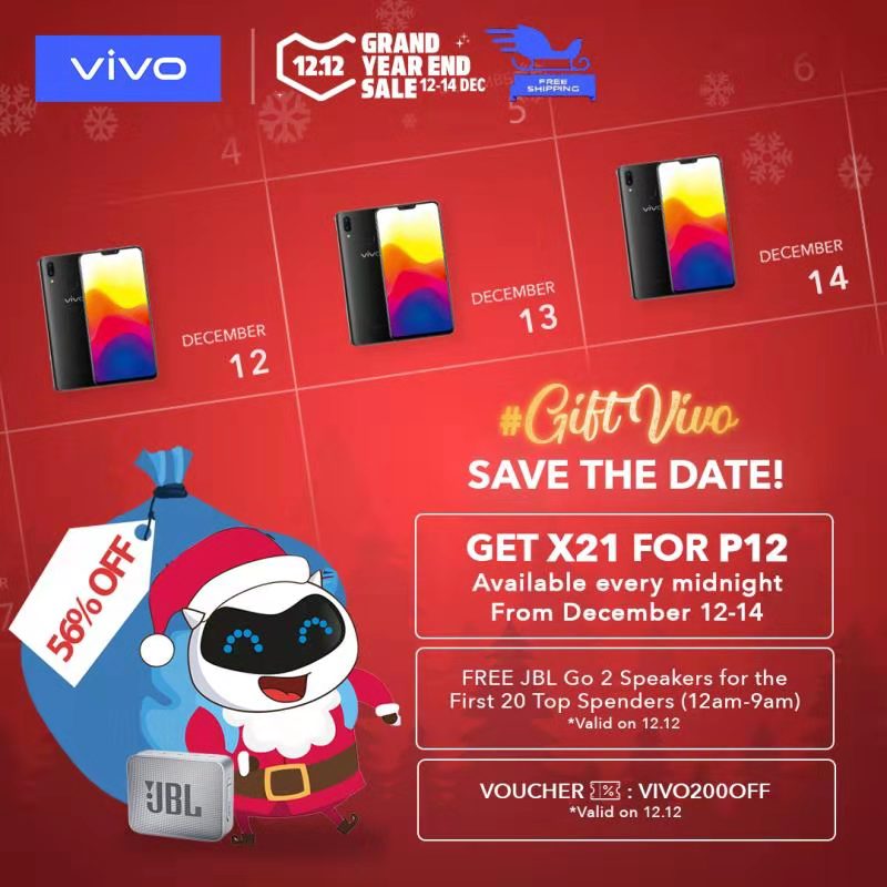 From December 12 to 14, lucky Lazada customers can also get a chance to purchase the Vivo X21 for just Php12, with only one unit to be sold per day.