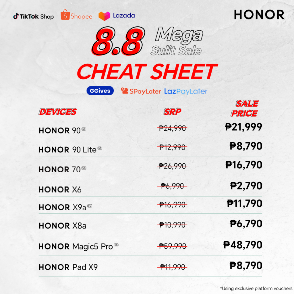 Manila, Philippines – HONOR, a leading global technology brand, is thrilled to announce its 8.8 Mega Sulit Sale, offering incredible deals and flexible payment options for its popular smartphones. Enjoy massive discounts and take advantage of the 0% installment feature on SPayLater when you purchase select HONOR devices on Lazada, TikTok Shop, and Shopee.