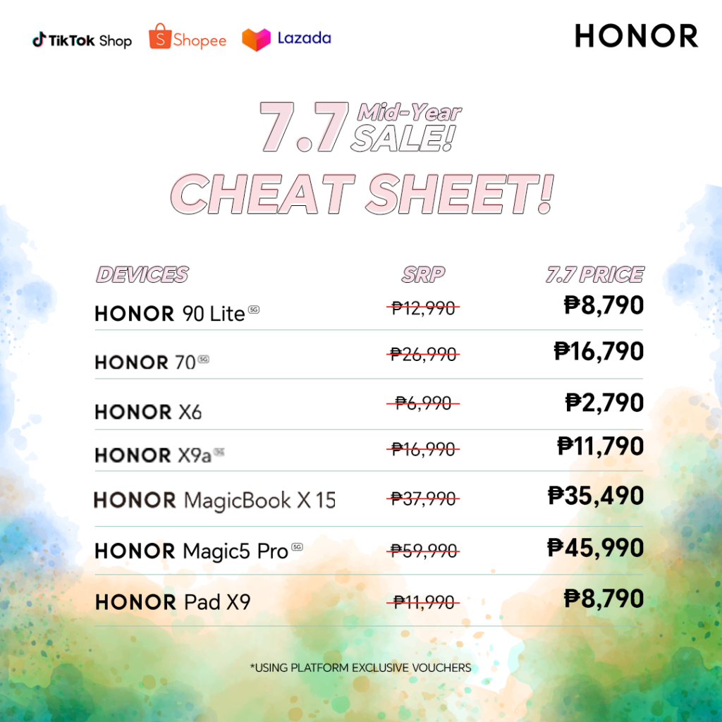 HONOR Heats Up 7.7 sale these offers are only available from July 7th to July 11th, so mark your calendars and head over to Lazada, Shopee, or Tiktok Shop to snag your favorite HONOR device at an unbeatable price. Upgrade your tech with HONOR this 7.7 Mid-Year Sale!