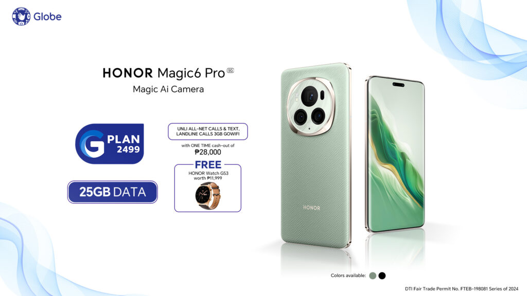 “We are excited to partner with Globe to offer more flexible payment options for our customers,” said Stephen Cheng, Vice President of HONOR Philippines. “The HONOR Magic6 Pro, renowned for its Falcon Camera System and advanced AI features, is now more accessible than ever.”