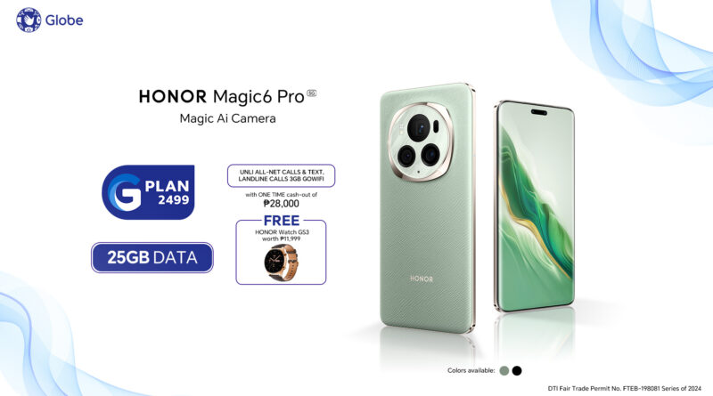 Manila, Philippines – August 1, 2024 – HONOR, a leading global technology brand, has announced the availability of its flagship smartphone, the HONOR Magic6 Pro, through Globe Postpaid plans. Customers can now own this cutting-edge device for as low as Php 2,499 monthly under the GPlan 2499, which includes unlimited all-net calls and texts, landline calls, and 3GB Go Wifi with a one-time cashout of Php 28,000. As a bonus, Globe is offering a FREE HONOR Watch GS3 worth Php 11,999 until August 16, 2024.