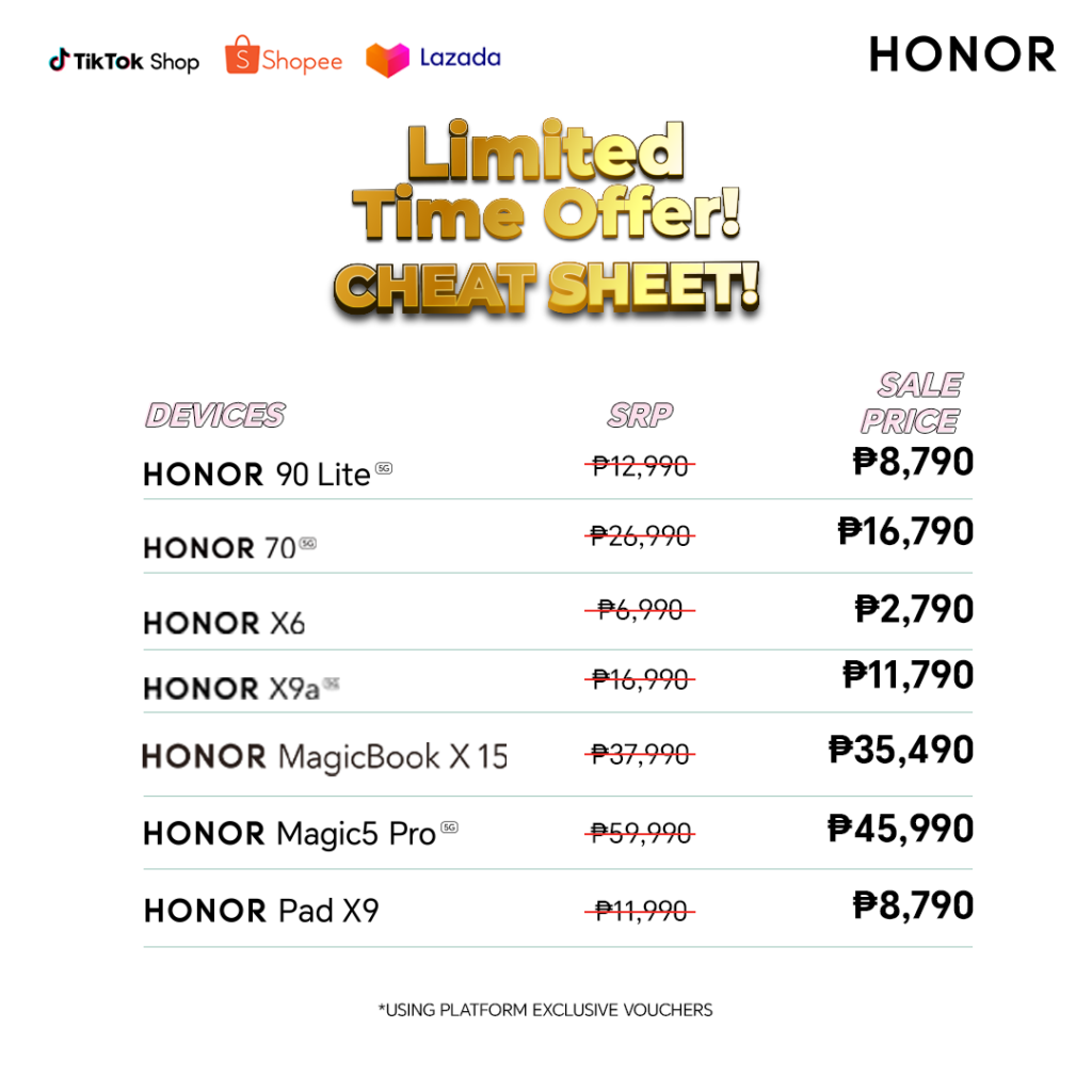 Get ready to upgrade your tech game without breaking the bank! Visit the official HONOR Philippines Lazada and Shopee stores for more information and complete product details.