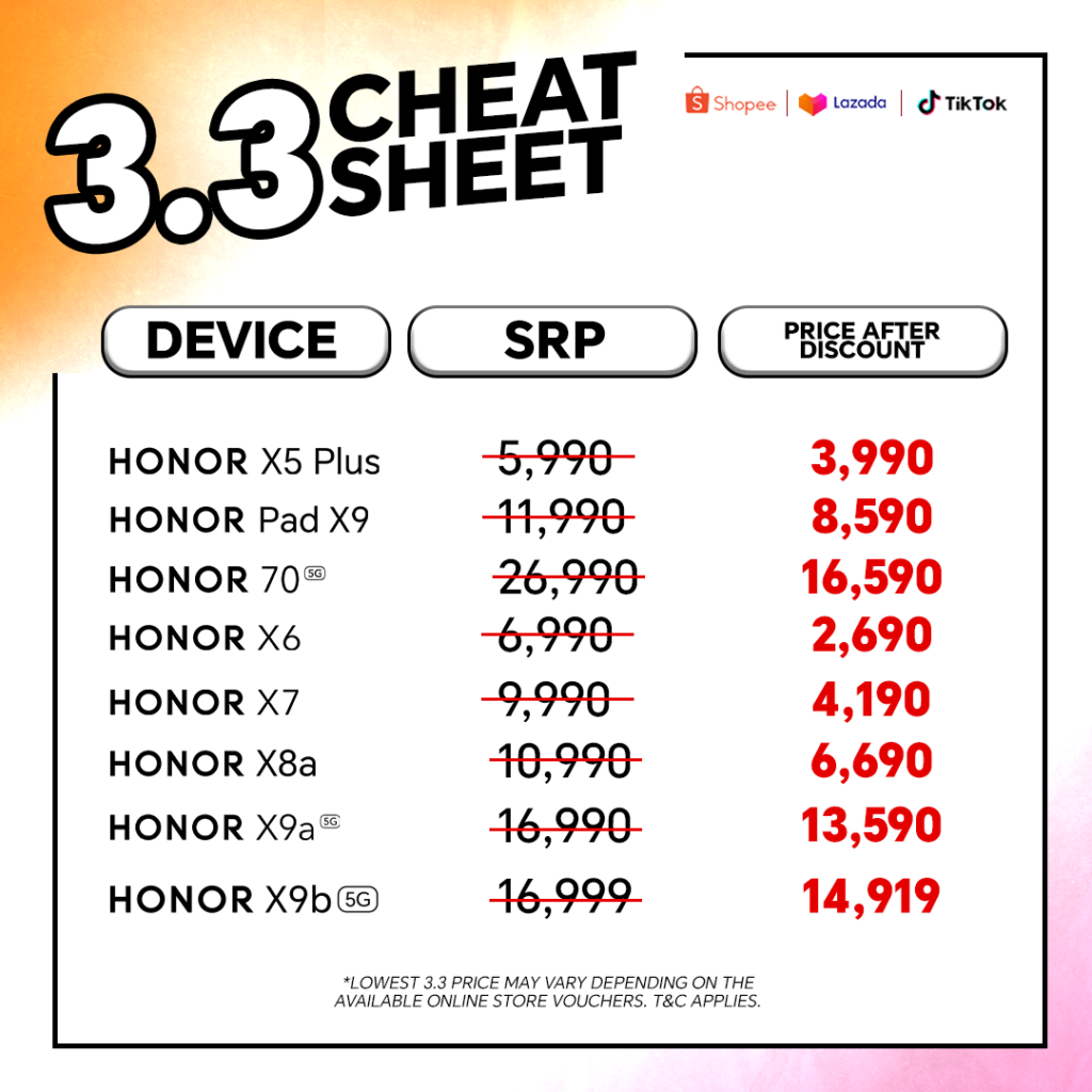 Calling all tech fans! HONOR Philippines is showering you with amazing deals this 3.3 Super Sale. Get ready for massive discounts, exciting freebies, and exclusive vouchers across various platforms.
