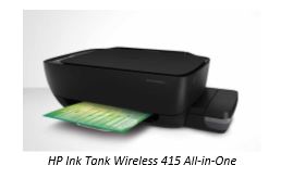 • HP Ink Tank Wireless 415 All-in-One lets you print at high volumes for an extremely low cost and get easy mobile printing. With a reliable, spill-free ink system, you’ll be able to print up to 8,000 pages color or 6,000 pages black, and produce exceptional quality.
