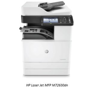 • HP LaserJet MFP M72630dn is an easy-to-use multifunction printer that is ready to take on your business printing with robust paper handling and versatile options. It delivers performance and reliability at an affordable price.