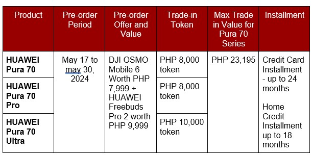 Trade-In Program: Get an additional PHP 8,000 token for the Pura 70 and Pura 70 Pro, or PHP 10,000 for the Pura 70 Ultra when you trade in your old Huawei smartphone.
