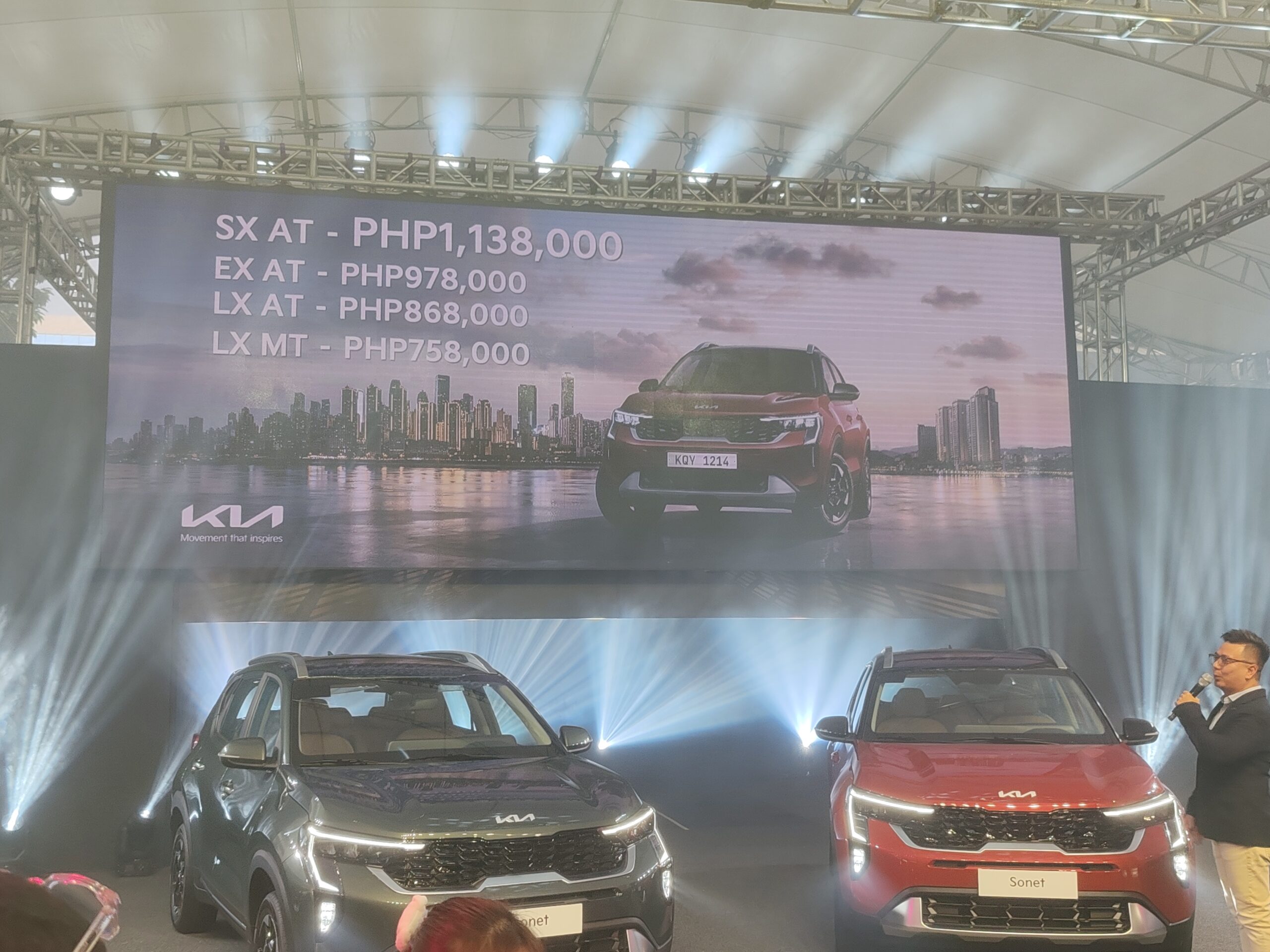 The Price point of the new Kia Sonet is right in the sweet spot for Filipino consumers the Php 700,000 to the about Php 1.1 Million range. So From the entry Model of the LX MT which starts at Php 758,000, the LX AT which is Php 868,000, The EX AT which is Php 978,000, and the top of the line SX AT which is priced at Php 1,138,000. The price point is geared to the Filipino automotive consumer.