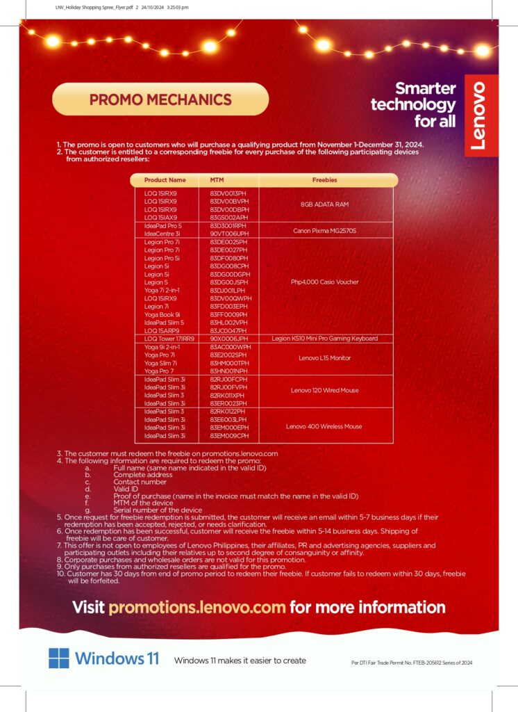 Please note that the promo is not open to corporate purchases, wholesale orders, or employees of Lenovo Philippines and its partners. For full promo mechanics, visit the official website.