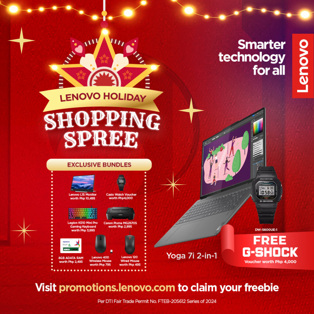 Manila, Philippines – November 19, 2024 – Lenovo, a global leader in consumer technology, is making the holiday season even more exciting with its Holiday Shopping Spree Promo. Running from November 1 until December 31, 2024, customers across the Philippines can take advantage of exclusive deals and freebies when purchasing select Lenovo devices from authorized resellers.