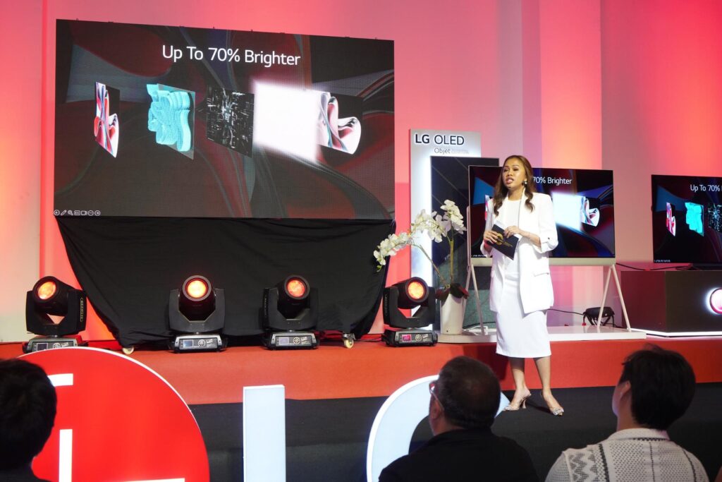 Ms. Angelica Dumlao, product manager for LG TVs, highlighted the key benefits of LG OLED technology. She summarized it concisely: “A, B, C, D, and E represent the pillars of LG’s technical leadership in OLED. A stands for the α9 AI Processor Gen 6, showcasing LG’s commitment to cutting-edge AI integration. B represents the Brightness Booster and Brightness Booster Max, enhancing picture quality in LG’s top OLED TVs.” She emphasized LG’s confidence in their OLED technology, reflected in their 2-year warranty (C). She mentioned LG’s sleek and innovative designs, including the impressive ONE Wall Design (D). Lastly, she highlighted the extraordinary viewing experience delivered by LG OLED TVs (E).