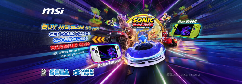 The promotion runs from September 26 to October 31, 2025, and is available while supplies last. Buy a qualifying MSI Claw A8 handheld, and you’ll receive a complimentary digital copy of Sonic Racing: CrossWorlds for PC.