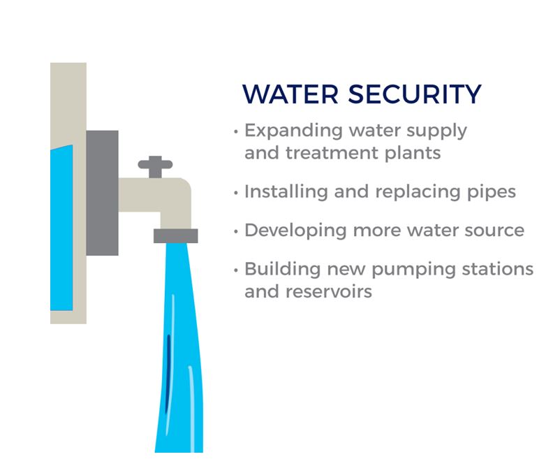 For five years, Maynilad will allocate its generated funds for disaster resiliency, water security, environmental sustainability, and expansion projects. Some examples on service improvements are the retrofit of existing pumping stations and sewage treatment plants, construction of Putatan Water Treatment Plant 2, and the development of new water sources (Kaliwa Water Supply Project). They will also install 541 kilometers of pipelines to bring water into areas that still rely on deep wells.