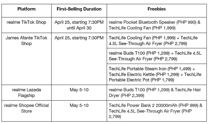 Feeling lucky? Participate in the Lucky 12 challenge happening at select realme concept and kiosk stores. Visit these stores during the Lucky Hour time slots (11am to 1pm and 4pm to 6pm) from April 26-28 and May 3-5. There’s over P600,000 worth of prizes waiting to be won, including TechLife 4L Digital Rice Cookers, TechLife Wireless Mice, TechLife Desk Lamps, and TechLife Multi-Sleeve Laptop Bags.