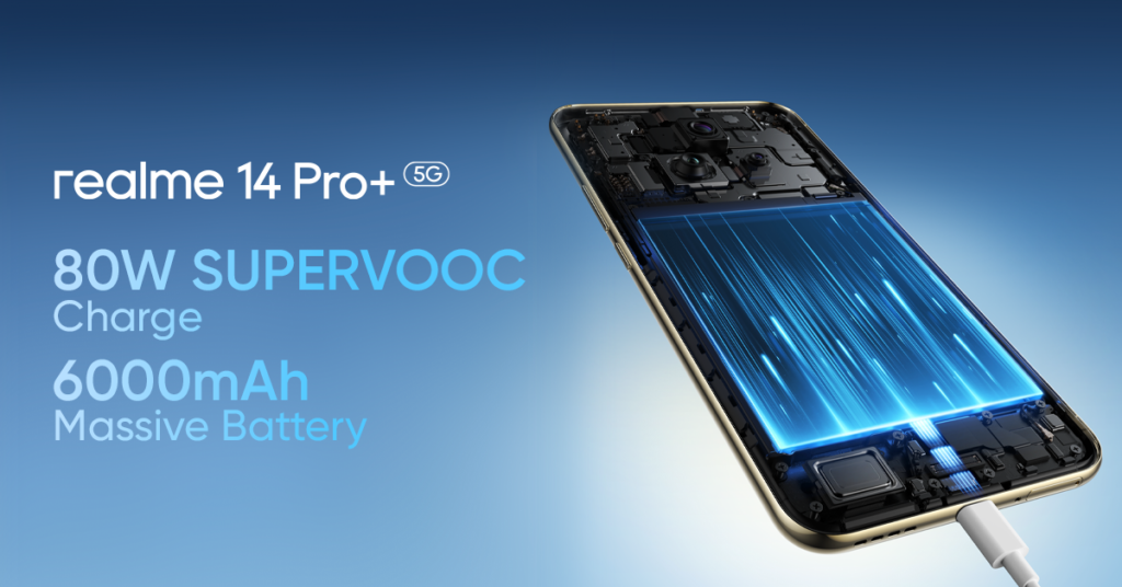 - Realme 14 Pro+ 5G: With 80W SUPERVOOC charging, you can go from zero to 50% in just 23 minutes, and a full charge takes under an hour.