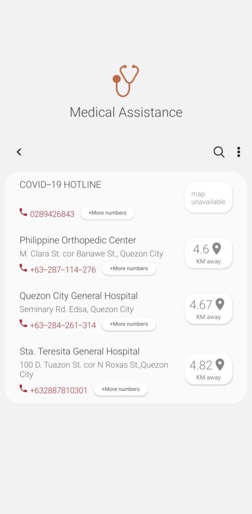 A dedicated COVID-19 emergency button now displays the DOH and Red Cross’ COVID-19 hotlines. Contacts for DOH, PNP and the Philippine Red Cross have been updated as well.