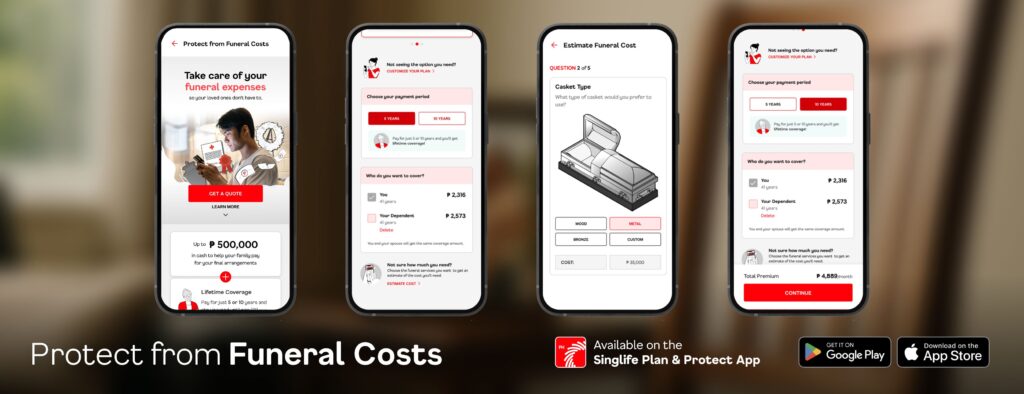 Protect from Funeral Costs is available exclusively on the Singlife Plan & Protect App, which can be downloaded from the App Store and Google Play.