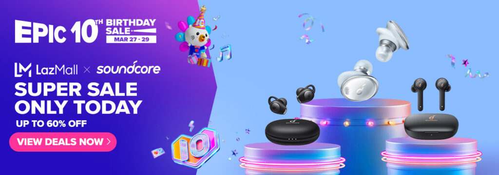 Manila, Philippines, 25 March 2022 — Soundcore, Anker Innovations’ premium audio brand is joining Lazada’s epic 10th Birthday Sale with huge discounts and exciting freebies.