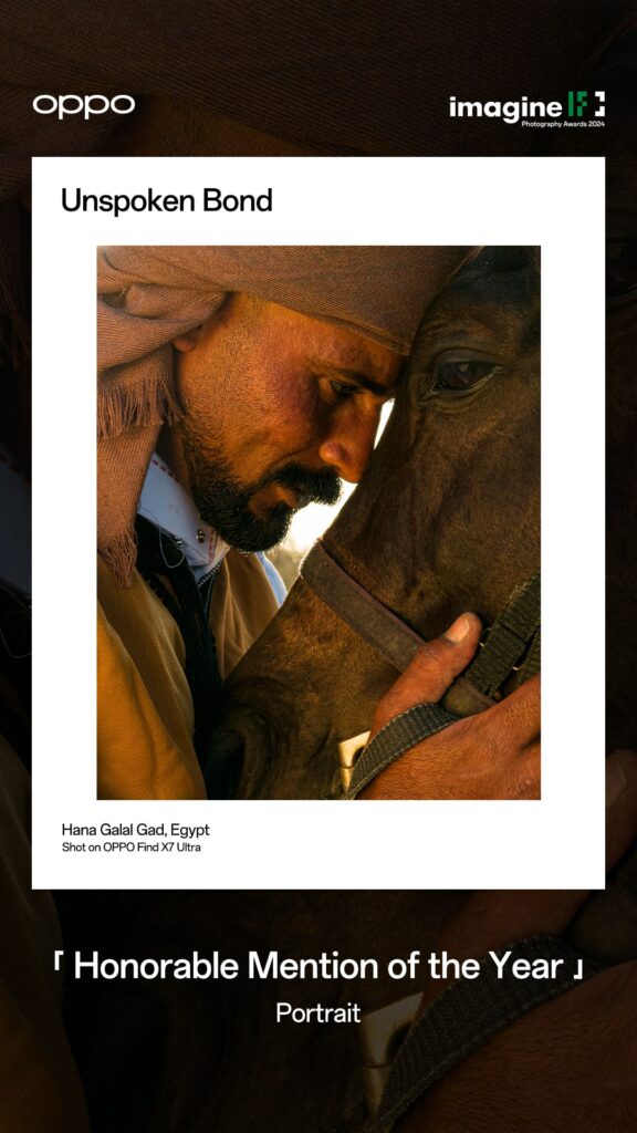 Similarly, Egyptian photographer Hana Galal Gad’s work, “Unspoken Bond,” captures a profound connection between a man and a horse. Recognized in the Portrait category, this piece reflects Gad’s own childhood memories of horseback riding. OPPO’s imaging technology brings out the story within each image, combining precise details and natural light to create an emotional impact that feels authentic.