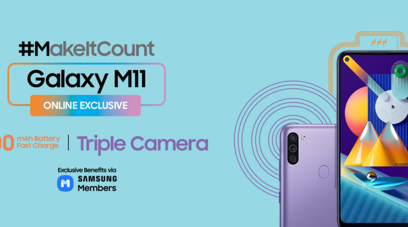 More can #MakeItCount with the Galaxy M11, exclusively available on online partner stores Lazada, Shopee, Abenson, and MX MemoXpress Online starting today, June 15 and on the Samsung Online Store starting June 16. Available in violet and black variants, the new Galaxy M11 is priced at PHP 7,490.