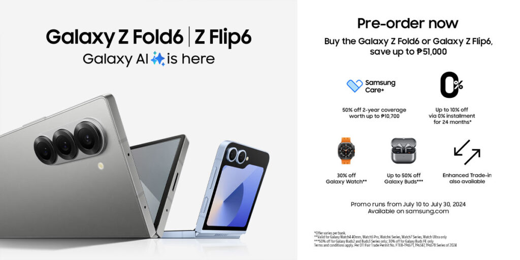 - Galaxy Z Fold6 & Z Flip6: Pre–order the Galaxy Z Flip6 and get large savings with the available enhanced trade-in offers when you trade in your old device.