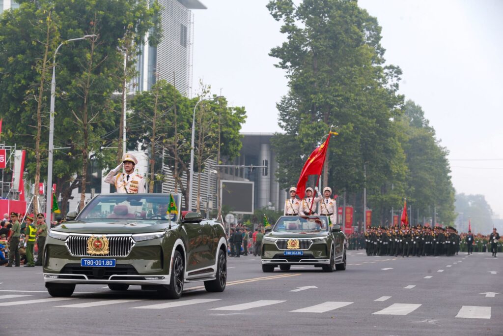 Meanwhile, just a few blocks away, VinFast’s ceremonial VF 9s were rolling through parade rehearsals. Open-top, custom-built, and gleaming under the Hanoi sun, these EVs carried military and police units with quiet confidence. Two very different vehicles. One very clear message: Vietnam can now build for both defense and diplomacy.