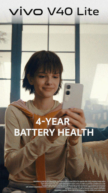 Enjoy a 4-year battery warranty when you pre-order the vivo V40 Lite from October 19th to October 31st. This warranty covers battery replacement if the battery capacity drops below 80% within four years of purchase.