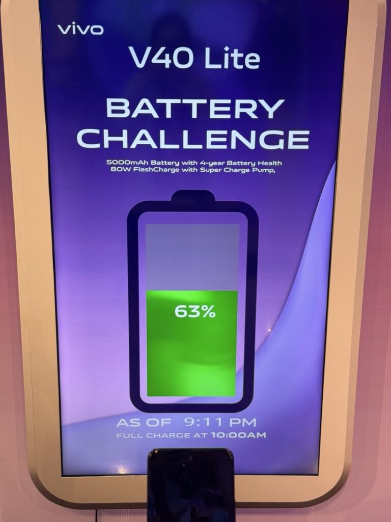 Manila, Philippines – Vivo presented Filipinos with a unique opportunity to experience the exceptional endurance of the vivo V40 Lite during the Lite Up Your Life event held at SM North Edsa Annex Atrium. The event, which spanned from 10 AM to 9 PM, allowed visitors to get hands-on with the fully charged vivo V40 Lite. Participants engaged in a variety of activities, from taking photos and playing videos to enjoying their favorite music. Despite continuous use for 11 hours, the vivo V40 Lite’s battery impressively maintained a 63% charge at exactly 9:11 PM, showcasing its remarkable battery performance.