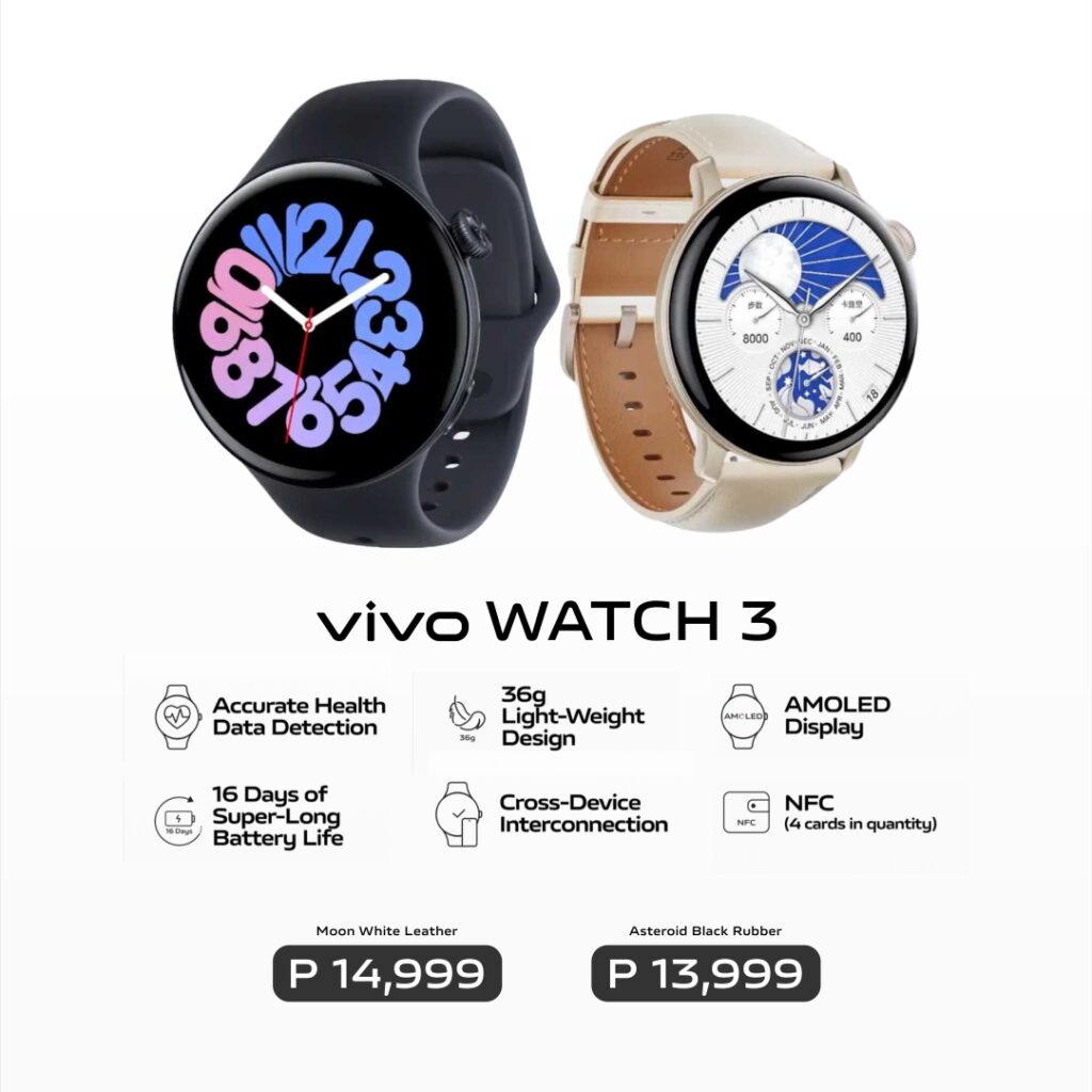 The vivo Watch 3 is now available for purchase at vivo concept stores and kiosks nationwide. It is priced at PHP 13,999 for the Asteroid Black variant and PHP 14,999 for the Moonlight White variant.