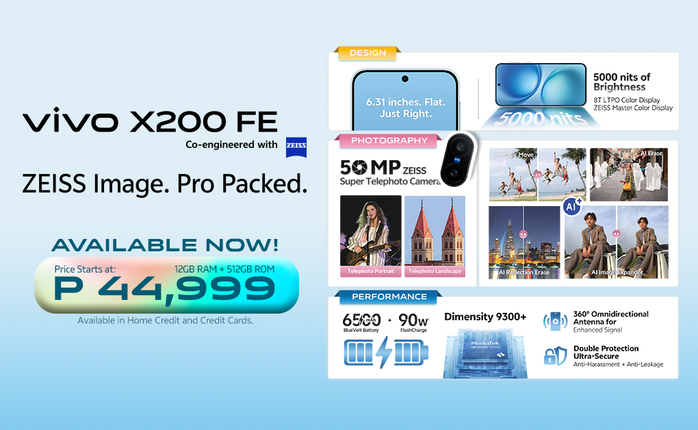 Step into flagship power and elevate your mobile photography game with the vivo X200 FE. With Php 12k worth of freebies available only until July 25, there’s no better time to secure your unit and experience a flagship that matches your lifestyle, creativity, and ambition.