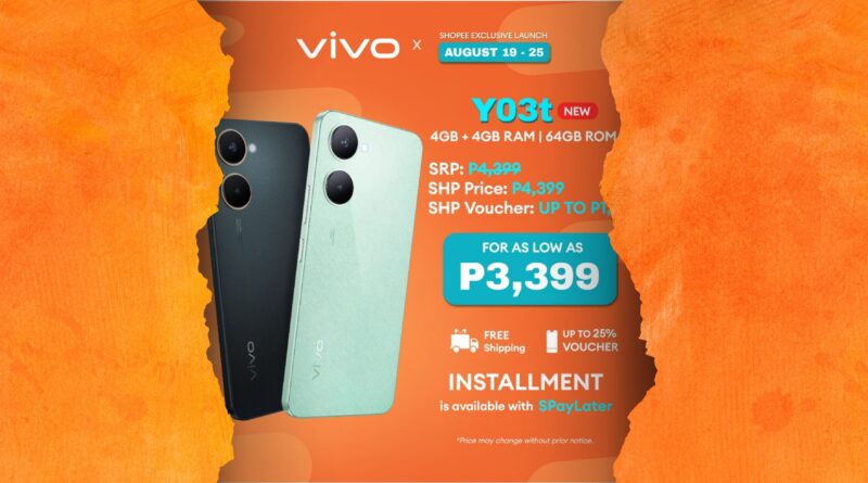Manila, Philippines – August 21, 2024 – vivo, a leading global smartphone brand, has announced the exclusive launch of the vivo Y03t on Shopee. This budget-friendly gaming phone is now available at a promotional price of Php 3,399 until August 25, 2024.