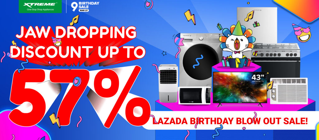 Manila, Philippines (March 23, 2021) — Surprising discounts up to 57% await you at XTREME Appliances as they participate in Lazada’s 9th Birthday Blowout and Shopee’s Mega Free Shipping Sale on March 27! Time to gear up your home with appliances from your one-stop-shop appliances brand by looking for enticing products and adding them into your cart days prior to the big sale event!