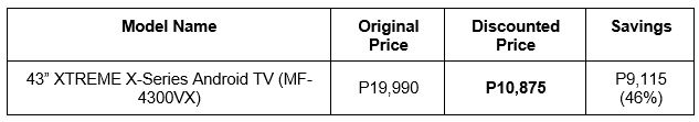Here’s a three-point deal for you on Lazada! The most affordable 43” XTREME X-Series Android TV can bring together all your entertainment needs by allowing you to stream movies and shows in different applications from Google Play Store. It is also Dolby Audio certified so you can enjoy dynamic sound quality and cinema-like speakers.